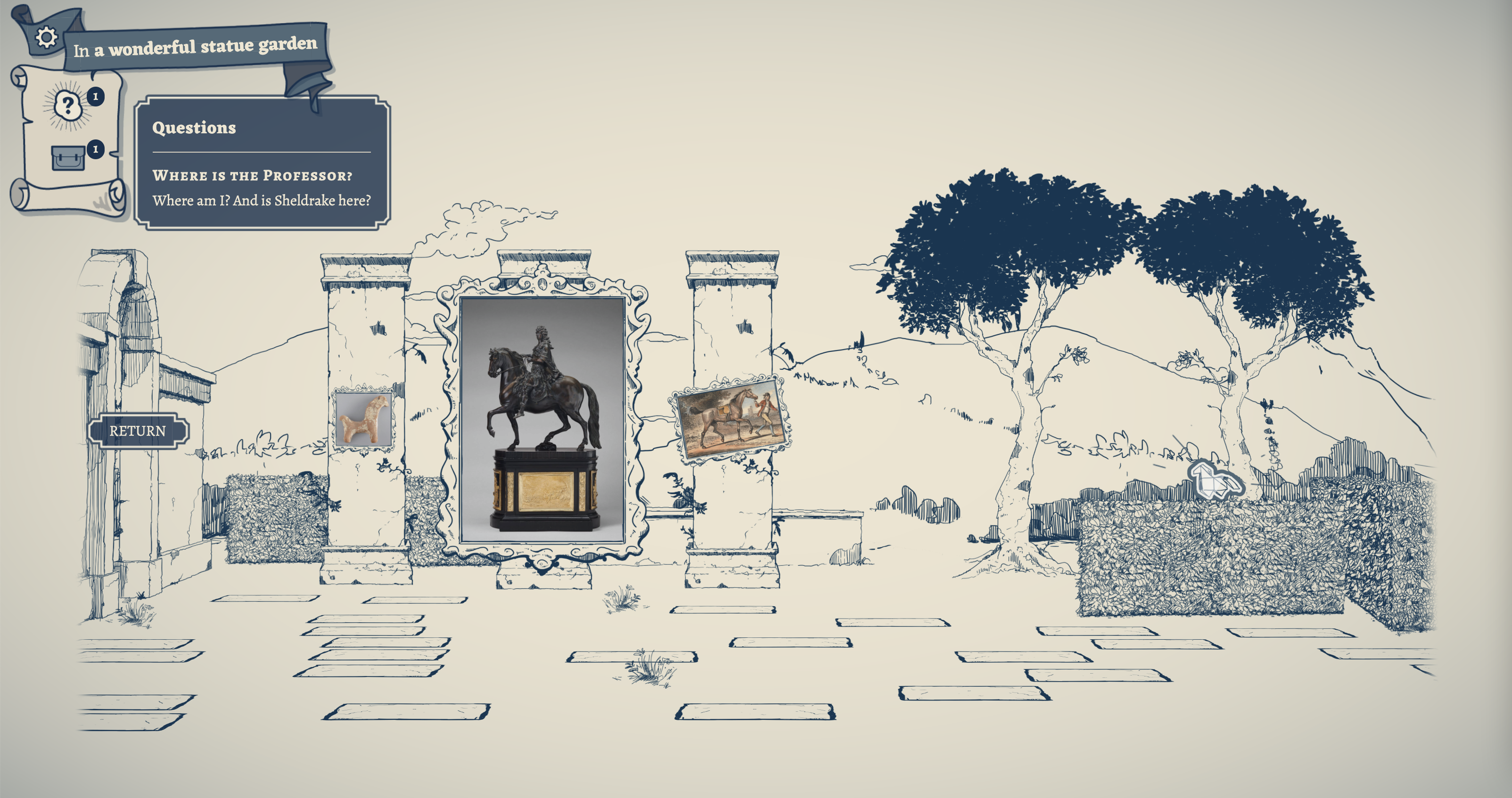 Explore the Labyrinth, room to room, or travelling through the paintings on the walls themselves. Follow clues and leads as you try to piece together the many mysteries.